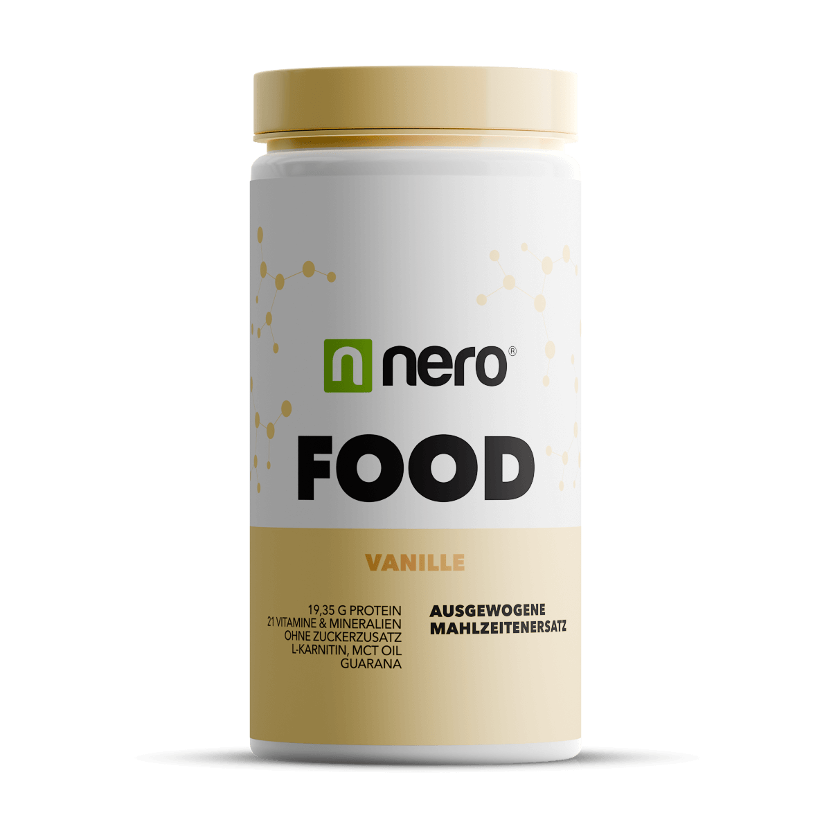 Funktionelle gesunde Ernährung Nero FOOD ist die ideale Mahlzeitenersatzlösung mit hohem Proteingehalt sowie ausgewogenem Gehalt an Vitaminen und Mineralstoffen. Sie enthält keinen zugesetzten Zucker, sättigt für 3–5 Stunden und ist in Sekunden zubereitet – einfach mit Wasser oder Milch anrühren und genießen.