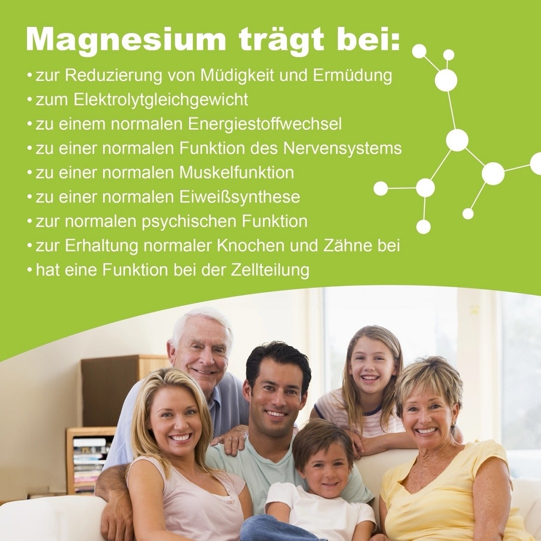 Dieses Mineral hilft, Müdigkeit und Erschöpfung zu verringern, unterstützt die normale Muskelfunktion und schützt vor Krämpfen. Gleichzeitig trägt es zum seelischen Wohlbefinden, zu besserer Konzentration und zur gesunden Funktion des Nervensystems bei. Magnesium ist zudem entscheidend für den Erhalt gesunder Knochen und Zähne – wertvoll nicht nur für Sportler, sondern für alle, die langfristige Vitalität anstreben.
