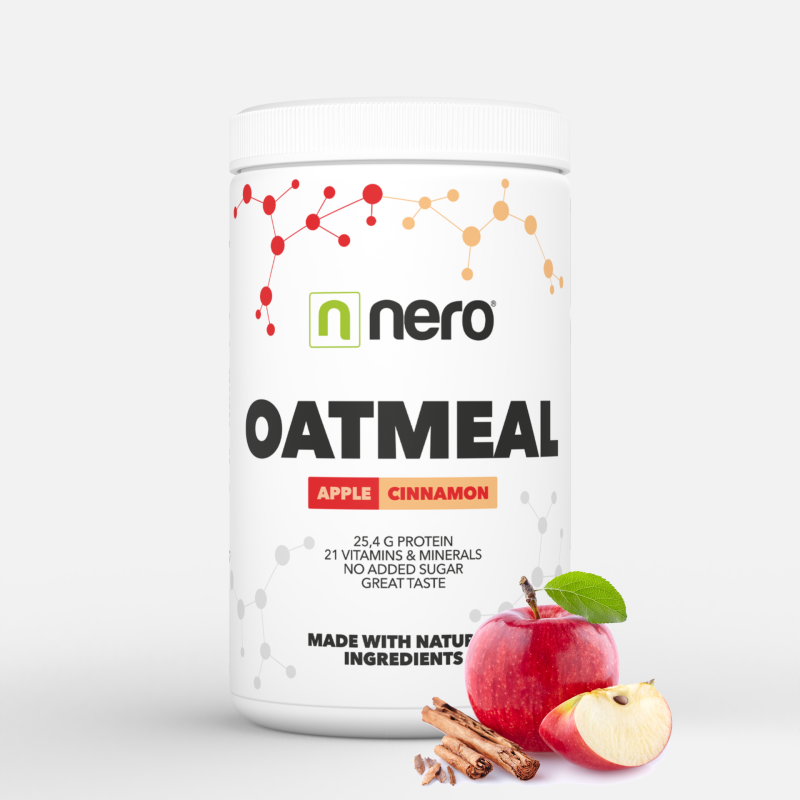 Nero OATMEAL ist funktionelle Ernährung, die ein ausgewogenes Nährstoffverhältnis, großartigen Geschmack und einfache Zubereitung vereint. Eine Portion enthält 25,4g Eiweiß, ist reich an Ballaststoffen, liefert 21 Vitamine und Mineralstoffe und kommt ganz ohne zugesetzten Zucker aus. Dank der natürlichen Zutaten erhalten Sie eine gesunde Mahlzeit, die satt macht und Ihre Leistungsfähigkeit unterstützt.
