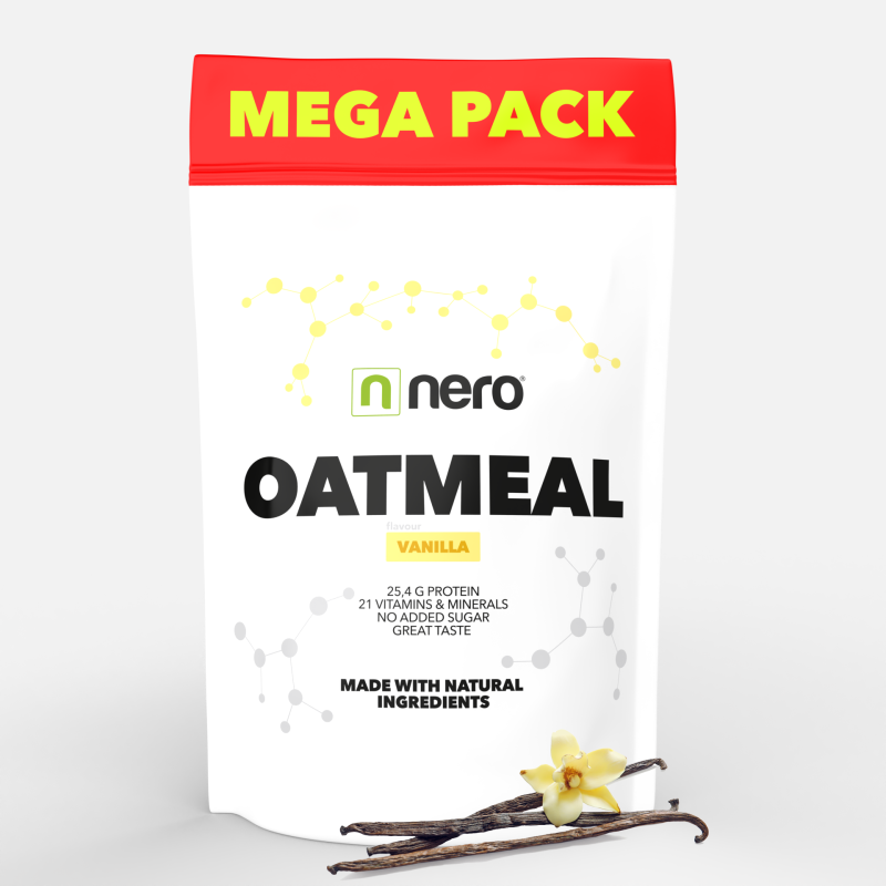 Nero OATMEAL ist funktionelle Ernährung, die ein ausgewogenes Nährstoffverhältnis, großartigen Geschmack und einfache Zubereitung vereint. Eine Portion enthält 25,4 g Eiweiß, ist reich an Ballaststoffen, liefert 21 Vitamine und Mineralstoffe und kommt ganz ohne zugesetzten Zucker aus. Dank der natürlichen Zutaten erhalten Sie eine gesunde Mahlzeit, die satt macht und Ihre Leistungsfähigkeit unterstützt.
