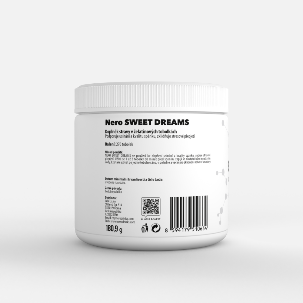 Nero Sweet Dreams ist ein Nahrungsergänzungsmittel für alle, die sich nach einem ruhigen und tiefen Schlaf sehnen. Es hilft, den Geist auf natürliche Weise zu beruhigen, die Schlafqualität zu verbessern und das Einschlafen zu erleichtern – ganz ohne Abhängigkeit oder Benommenheit am Morgen. Rezeptfrei und ohne Nebenwirkungen.